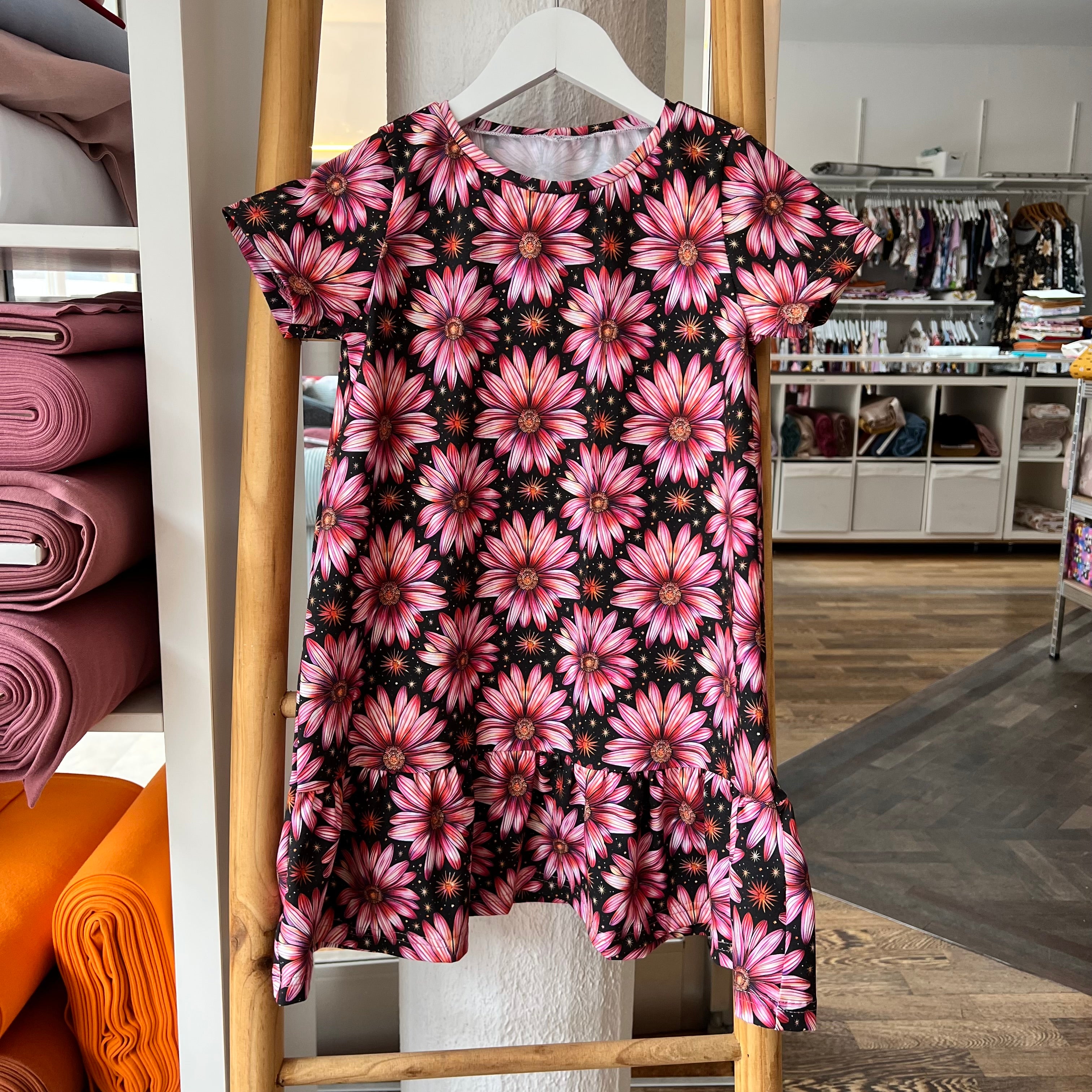 Möchtest du etwas ganz Besonderes zaubern? Wie wäre es mit Partnerlooks aus Jersey – zum Beispiel ein Kleid aus einem Mädchenstoff für deine Tochter und ein passendes Shirt aus Damenstoff für dich?