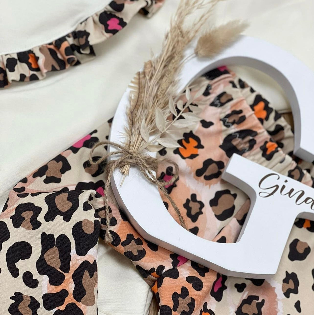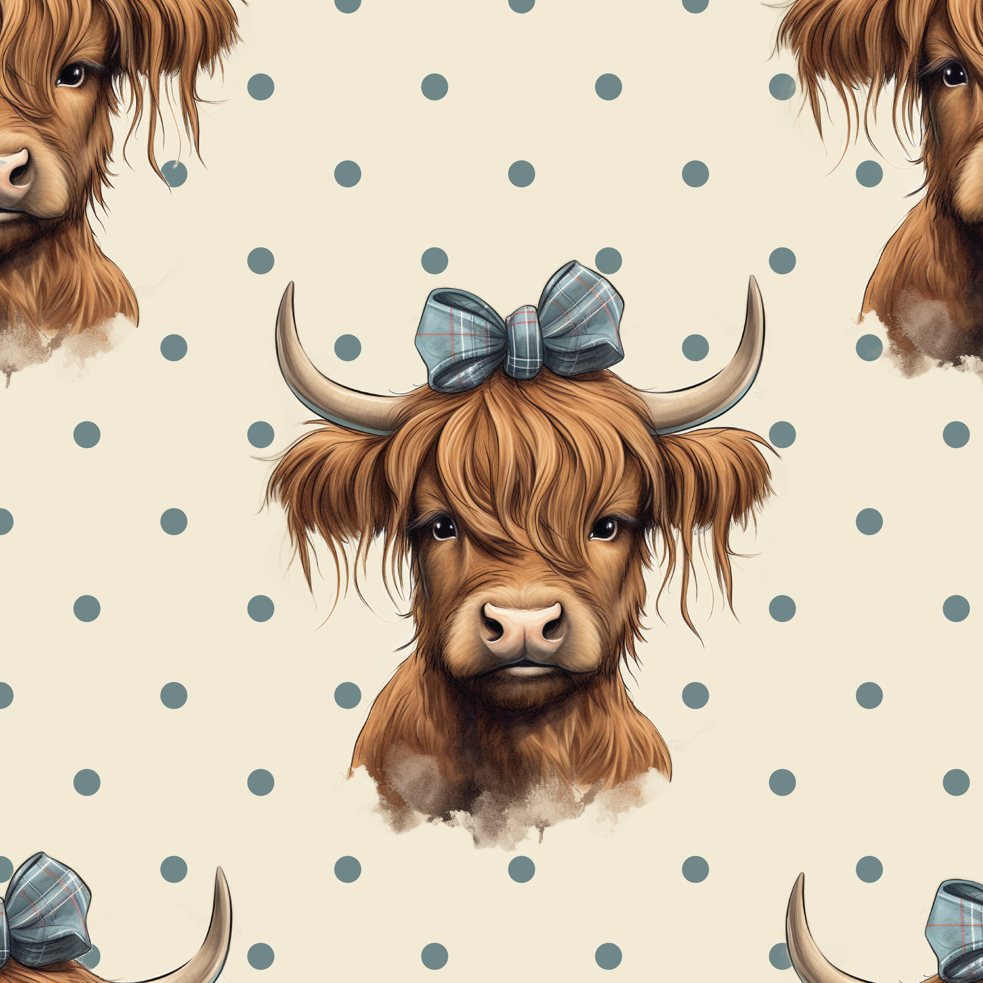 Kinderstoff süße Kuh mit Leo Haarband mit beigen Flecken von Katzengold Design